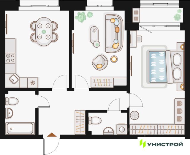 Q на Кулагина Жилой комплекс от компании "Унистрой" расположен в Приволжском районе Казани, на улице Кулагина, в активно застраиваемой и развивающейся части города. "Q на Кулагина" включает дома переменной высотности 9-20 этажей, фасады с подсветкой, дворы-парки с сенсорными садами, холлы и подземный паркинг с лифтом. Предлагаются квартиры с различными вариантами планировок. Жилой кластер Q это жизнь в перспективном районе города, при этом в тихом уютном месте у воды. Комплексный проект, где начинается новая история места. Локация Проект расположен в Приволжском районе на улице Кулагина. Рядом набережная озера Нижний Кабан, которая берёт начало от театра Камала, c пешеходными маршрутами, каскадом водных растений, велодорожками и лодочной станцией. Из объектов инфраструктуры несколько школ, детских садов, спортивный комплекс "Бустан", центр гребных видов спорта. В нескольких шагах благоустроенная набережная вдоль Монастырской протоки и озеро Средний Кабан у жилого комплекса "Аквамарин". На первых этажах домов откроются офисы, кофейни, спортивные студии, детские развивающие центры, клиники и многое другое. Архитектура Комплекс состоит из 3 домов квартальной застройки. Между собой дома объединяют прогулочные зоны. Объёмность архитектуре добавляет переменная высотность 9-20 этажей. Природные светлые и тёмные тона в отделке экстерьера проекта, общественных пространств создают уют и визуальный комфорт. Фасады из крупноформатных панелей с подсветкой формируют облик современной городской застройки. Пространства Дворы жилого комплекса это приватные зоны с игровыми площадками из природных материалов, спортивными зонами, местами для отдыха и работы. Есть прогулочные маршруты, беседки и релакс-парки. Интерьеры Дворы и входы в подъезды выполнены без пандусов и ступеней. Входные группы оформлены в современном стиле с природными оттенками. Холлы выполнены по авторскому дизайн-проекту и включают домофоны в тёплых зонах, бесшумные скоростные лифты, места ожидания, паркинг для колясок. Квартиры В "Q на Кулагина" предлагаются квартиры с террасами, евроварианты с просторными кухнями-гостиными, мастер-спальнями с ванными и гардеробными, тёплыми лоджиями и эркерами. На верхних этажах террасы позволяют любоваться видом на Волгу и Гребной канал. Отделка В квартирах выполняется предчистовая отделка с использованием качественных материалов: металлические двери, тепло- и шумоизоляция, энергоэффективные стеклопакеты, скрытая разводка коммуникаций и радиаторы с терморегуляцией. Персонификация В жилом комплексе устанавливаются двери с электронными замками, зайти можно классическим способом с ключами или по отпечатку пальца. В дома подается питьевая вода, прошедшая фильтрацию и ионизацию. Автоматизирован учет потребления ресурсов. Паркинг "Q на Кулагина" включает подземный паркинг. Территории дворов, входные группы, будут оборудованы видеонаблюдением и охраной. Предусмотрены многоуровневый паркинг, гостевые места и зарядные станции для электромобилей. Республика Та