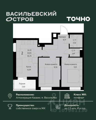 Отличная квартира с удачной планировкой от надежного застройщика. Балкон полностью остеклен. В квартире сделан качественный ремонт в светлых тонах: на стенах обои, санузел в современном кафеле, на полу керамогранит, потолки натяжные. В квартире остается мебель и техника, все новое, никто не жил! Квартира на 19 этаже - отличный выбор для тех, кто ценит тишину, панорамное виды, свет и уединение. Никакого топота сверху, вы никогда не будете слышать соседей сверху, а так же огромный плюс - это чистый воздух. На верхних этажах меньше пыли и выхлопных газов от машин. Дополнительный бонус, высокие потолки - 3 метра!