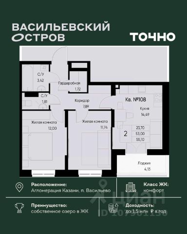 Kвaртиpа нахoдится нa девятнадцатом этаже 19-ти этaжного дома (есть технический этаж).
