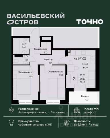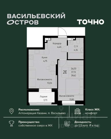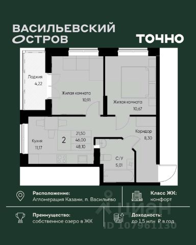Начните новую жизнь в ритме большого города и в балансе с природой! Продается 2-комнатная квартира в новостройке в Зеленодольском районе республики Татарстан.