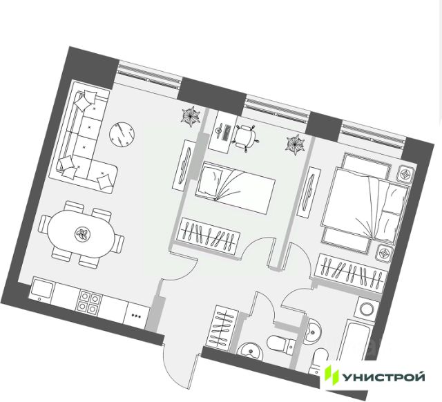 Уникум на Проспекте Победы "Уникум на Проспекте Победы" — проект от компании "Унистрой" в Казани. Жилой дом состоит из двух секций переменной высотности 7-25 этажей и гармонично вписывается в городское пространство. Жилой проект задает тренд на инклюзивную среду. Ту, в которой есть возможности для активной жизни и отдыха в пределах "Уникума". Проект отвечает ключевым запросам современного жителя большого города. Комфорт. Эстетика. И всё необходимое для успешной жизни рядом. "Уникум" — это лёгкая архитектура, стильное благоустройство и комфортное пространство для вашей жизни и отдыха. Развитый район "Уникум на Проспекте Победы" расположен в Советском районе Казани. Аэропорт находится в 25 минутах езды, ТЦ "Мега" и "Южный" в 10 минутах ходьбы, а остановка "Закиева" в двух минутах. В шаговой доступности фитнес-клубы, салоны красоты, медицинские центры и поликлиника. Для семей с детьми детский сад в доме, школы 156, 144, 167, 187 и 171 поблизости. Функциональность и эстетика "Уникум на Проспекте Победы" гармонично вписывается в городской ландшафт. Фасад в бежевых тонах с декоративным кирпичом соответствует современным требованиям к эстетике. На первых этажах коммерческие помещения для магазинов, кофеен и офисов, выполненные в едином стиле. Просторные холлы с высотой потолков 4,2 метра, подсветкой, современным дизайном и комфортной мебелью создают уютную атмосферу. Предусмотрены бесшумные скоростные лифты и колясочные с зарядками для электросамокатов. Входные группы из стекла, домофоны в теплом тамбуре, система грязезащиты и навигация обеспечивают удобство и безопасность. Френдли-среда и урбанистические тренды двора Двор "Уникума на Проспекте Победы" это френдли-среда, урбанистические тренды и баланс между отдыхом и работой. Жилой комплекс предлагает многообразие общественных пространств, а также фитнес-площадку, воркаут-зону, детские площадки для разных возрастов. Велопарковки у каждого подъезда, подземный паркинг и открытые машиноместа. Уникальные планировочные решения Жилой дом предлагает большое разнообразие планировок: студии, 1-комнатные, 2-комнатные (в том числе с европланировкой), просторные 3-комнатные. Квартиры с мастер-спальнями, гардеробными, видовые, с панорамными и угловыми окнами. Увеличенные оконные проёмы для создания светлого пространства. Лёгкое решение бытовых вопросов В "Уникуме на Проспекте Победы" обеспечивается подача чистой воды в каждую квартиру. Автоматическая передача данных учета воды, электричества и тепла в сервисную компанию через мобильное приложение. Электронные замки на входных дверях с дистанционным управлением. Паркинг "Уникум на Проспекте Победы" включает подземный паркинг со спуском на лифте. В нём 222 места для ваших автомобилей, 16 семейных и еще гостевые места. Паркинг, как и внутренний двор, охраняется и оборудован видеонаблюдением. Республика Татарстан, Казань, Проспект Победы , 001 кв.6 Продается 2-комнатная квартира с отделкой рядом с метро Проспект Победы.