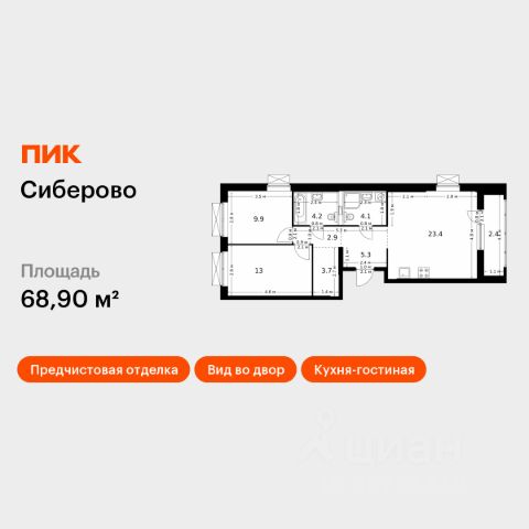 Продаётся 2-комн. квартира площадью 52,7 кв.м на 4 этаже 16 этажного дома (Корпус 3, Секция 1) проекта ПИК Сиберово. Светлый просторный подъезд на уровне земли, функциональная планировка, большие окна, предчистовая отделка. "Сиберово" - жилой квартал на улице Журналистов с парками в каждом дворе, школой и двумя детскими садами. До центра Казани - 15 минут пути на машине. Переменная высота домов от 7 до 26 этажей создаёт ощущение простора, а солнечному свету позволяет беспрепятственно проникать во дворы и квартиры. С верхних этажей откроется панорамный вид на реку Казанку, "Ак Барс Арену" и центр семьи "Казан". Жилой квартал отметили на форуме "Казаныш", где награждают лучшие архитектурные проекты Казани. В 2023 году проект оказался в двух номинациях: "Лучшее благоустройство территорий" и "Лучшая архитектурно-градостроительная подсветка". В "Сиберово" будет всё необходимое для комфортной жизни: на первых этажах разместятся магазины, кафе и полезные сервисы. Внутри жилого квартала запланировано строительство школы и двух детских садов. Для удобства жителей будут подземные паркинги в каждом доме, четыре наземных многоуровневых паркинга, индивидуальные кладовые и колясочные. В каждом дворе будет парк - тихое приватное пространство для жителей, где можно расслабиться после рабочего дня. Здесь красиво и уютно в любое время года. Через весь квартал протянется широкий пешеходный бульвар с велодорожками, велопарковками, зонами для отдыха, детскими и спортивными площадками. Входы в подъезды в "Сиберово" сделаны на уровне земли: по территории квартала удобно перемещаться и пешком, и на самокате, и с коляской. Первые этажи просторные и светлые: панорамное остекление пропускает много естественного света, а высота потолков доходит до пяти метров. Все квартиры сдаются в предчистовой отделке: с ровными белыми стенами, готовой гидроизоляцией, стяжкой полов, разводкой систем отопления, с окнами с надёжным пластиковым профилем. Вам останется только выбрать цвета и материалы для косметического ремонта, чтобы оформить квартиру на свой вкус. Вокруг "Сиберово" развитый район города: рядом детские сады, школы, колледж, поликлиники и торговые центры. До центра отсюда всего 15 минут на машине. Артикул 1025075 (Застройщик ООО "СЗ МТ ДЕВЕЛОПМЕНТ")