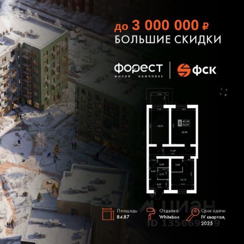 Прямая продажа от застройщика! Жилой Комплекс комфорт-класса. Продаётся 2-к квартира номер 10 общей площадью 45.8 кв.м. на 2-м этаже 7 этажного здания. Отделка Whitebox. Цена с учётом скидки. Особенности квартиры: Квартира с предчистовой отделкой (White box). Вам не придется заниматься черновыми и трудоёмкими работы, а чистовую отделку и дизайн - сделайте на свой вкус. Информация о комплексе: "Форест" - жилой комплекс комфорт-класса, созданный для тех, кто ищет гармонию с природой, не отказываясь от городского ритма. Расположенный в окружении леса и реки, он воплощает мечту о загородной жизни со всеми удобствами города. Здесь можно проживать самые тёплые моменты с близкими, дышать свежим хвойным воздухом, встречать утро на собственной террасе или проводить вечера с друзьями под открытым небом. Благоустроенная территория, прогулочные дорожки и зоны отдыха создают атмосферу уюта и гармонии. Поблизости - лес и Волга, куда можно выбраться на прогулку в любое время, не дожидаясь выходных. Благодаря вечнозелёным растениям и продуманному озеленению, дворы остаются зелёными круглый год. Транспортная доступность: - 4 мин. пушком до автобусной остановки - 5 мин. на машине до школы Внутренняя инфраструктура: Продуманное пространство для жизни, отдыха и развития. На территории комплекса работает собственный детский сад - современное и безопасное пространство, где дети всегда рядом с родителями. Во дворе установлены игровые комплексы для активных прогулок и развития малышей на свежем воздухе. Жителям доступны кафе и магазины, собственный SPA-центр, площадки для прогулок с питомцами, зоны для пикников и барбекю. Для любителей активного образа жизни предусмотрены велодорожки, воркаут-зоны и тропы для хайкинга, а в шаговой доступности находятся планетарий и глэмпинг. Просторный двор без машин и закрытая территория с системой контроля доступа обеспечивают высокий уровень безопасности и приватности. Здесь можно по-настоящему расслабиться и чувствовать себя дома - в окружении природы, комфорта и заботы о каждом дне.