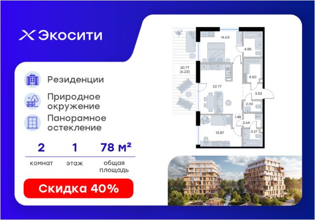 Продается 2-комн. квартира на 4-м этаже в строящемся проекте Экосити. Общая площадь лота составляет 64,83 кв. м, из которых 23,48 кв. м отведено под жилую и 23,32 кв. м под кухонную зону. Номер квартиры - 63 Преимущества резиденции в квартале "Резиденции": - перегородки межкомнатные перегородки в 1 кирпич, в С/У в 2 кирпича с заведением гидроизоляции на 20 см - потолки - без отделки - полы в помещениях: жилые комнаты, гардеробная, коридор, прихожая, кухня - шумоизоляция пола, стяжка -полы во влажных помещениях - гидроизоляция, стяжка -водоснабжение -ввод ХВС, ГВС, канализации в ближайший СУ/в квартиру - электрический щит - временный, при входе в квартиру - отопление - горизонтальная разводка в полу с установкой - входная дверь - металлическая входная дверь с декоративной накладкой - На территории Урбан-квартала предусмотрено строительство детского сада на 360 мест, школы на 1501 место, детский развивающий центр на 2000 мест. - Рядом с с кварталом Резиденции запланировано строительство детского сада на 360 мест, школы с детским развивающим центром на 1501 место - На первых этажах домов Урбан-квартала запроектированы коммерческие помещения - предусмотрены места для супермаркетов, бытовых услуг, кафе. - Собственный комьюнити-центр для жителей Урбан-квартала - Клуб Резидентов для жителей квартала Резиденции - бульвар "Река между камней" с плейхабом для детей, амфитеатром, спортивными зонами, аллеей достижений. Всем посетителям будет доступен иммерсивный маршрут и AR-игры. - Тайная тропа вдоль которой расположатся зоны тихого отдыха, йоги и медитаций - 2 смотровые площадки - Снейк-ран - Круговой спортивный маршрут - Специальные зоны для выгула собак - В Урбан-квартале предусмотрено строительство 2 многоэтажных паркингов на 300 и 360 машиномест. Всем жителям проекта доступен и привычный плоскостной паркинг вокруг территории проекта с возможностью в приложении дома получить информацию о наличии парковочных мест. - В квартале Резиденции предусмотрен подземный паркинг на 260 машиномест Экосити — это совершенство города в первозданной природе. Наполненный возможностями квартал, в котором вы не выбираете между городом или природой, семьей или работой, отдыхом или спортом, — вы берете всё сразу. Каждая семья, каким бы составом она ни жила, найдет для себя идеальное пространство. Планировочные решения разнообразны, также как и возможности отделки от черновой до полностью с ремонтом. Здесь запроектированы квартиры с просторной кухней-гостиной, чтобы семья могла комфортно проводить время вместе. Резиденции сдаются в черновой отделке, вы могли реализовать ваши самые смелые дизайнерские решения. Каждая резиденция это база, на которой можно выстроить свой личный стиль. Цена указана при 100% оплате или стандартной ипотеке. Узнайте подробности в Отделе продаж. Купить 2-комнатную квартиру первичка в районе Кировский в городе Казань.