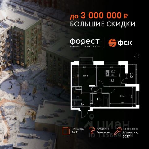 Прямая продажа от застройщика! Корпус 1.1 сдан! Жилой Комплекс комфорт-класса. Продаётся 2-к квартира номер 10 общей площадью 45.8 кв.м. на 2-м этаже 7 этажного здания. Отделка Whitebox. Цена с учётом скидки. Особенности квартиры: Квартира с предчистовой отделкой (White box). Вам не придется заниматься черновыми и трудоёмкими работы, а чистовую отделку и дизайн - сделайте на свой вкус. Информация о комплексе: "Форест" - жилой комплекс комфорт-класса, созданный для тех, кто ищет гармонию с природой, не отказываясь от городского ритма. Расположенный в окружении леса и реки, он воплощает мечту о загородной жизни со всеми удобствами города. Здесь можно проживать самые тёплые моменты с близкими, дышать свежим хвойным воздухом, встречать утро на собственной террасе или проводить вечера с друзьями под открытым небом. Благоустроенная территория, прогулочные дорожки и зоны отдыха создают атмосферу уюта и гармонии. Поблизости - лес и Волга, куда можно выбраться на прогулку в любое время, не дожидаясь выходных. Благодаря вечнозелёным растениям и продуманному озеленению, дворы остаются зелёными круглый год. Транспортная доступность: - 4 мин. пушком до автобусной остановки - 5 мин. на машине до школы Внутренняя инфраструктура: Продуманное пространство для жизни, отдыха и развития. На территории комплекса работает собственный детский сад - современное и безопасное пространство, где дети всегда рядом с родителями. Во дворе установлены игровые комплексы для активных прогулок и развития малышей на свежем воздухе. Жителям доступны кафе и магазины, площадки для прогулок с питомцами, зоны для пикников и барбекю. Для любителей активного образа жизни предусмотрены велодорожки, воркаут-зоны и тропы для хайкинга, а в шаговой доступности находятся планетарий и глэмпинг. Просторный двор без машин и закрытая территория с системой контроля доступа обеспечивают высокий уровень безопасности и приватности. Здесь можно по-настоящему расслабиться и чувствовать себя дома - в окружении природы, комфорта и заботы о каждом дне.