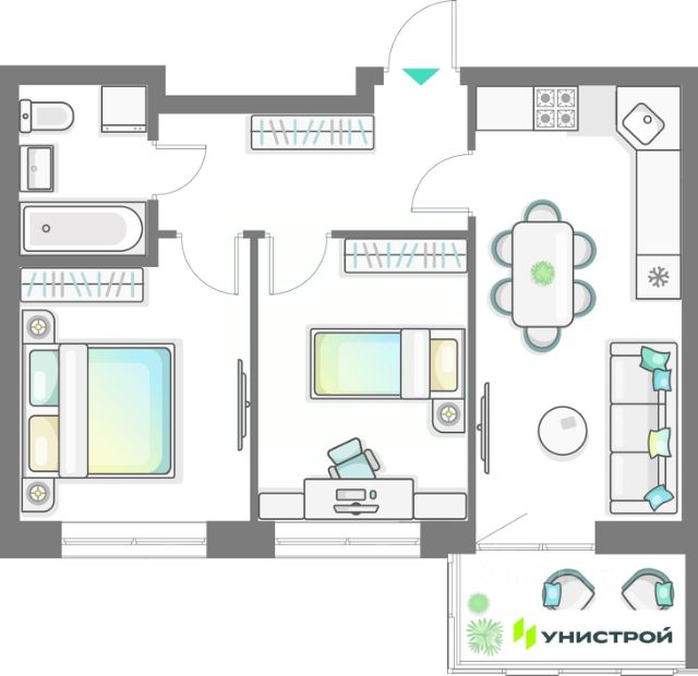 Уникум на Проспекте Победы "Уникум на Проспекте Победы" — проект от компании "Унистрой" в Казани. Жилой дом состоит из двух секций переменной высотности 7-25 этажей и гармонично вписывается в городское пространство. Жилой проект задает тренд на инклюзивную среду. Ту, в которой есть возможности для активной жизни и отдыха в пределах "Уникума". Проект отвечает ключевым запросам современного жителя большого города. Комфорт. Эстетика. И всё необходимое для успешной жизни рядом. "Уникум" — это лёгкая архитектура, стильное благоустройство и комфортное пространство для вашей жизни и отдыха. Развитый район "Уникум на Проспекте Победы" расположен в Советском районе Казани. Аэропорт находится в 25 минутах езды, ТЦ "Мега" и "Южный" в 10 минутах ходьбы, а остановка "Закиева" в двух минутах. В шаговой доступности фитнес-клубы, салоны красоты, медицинские центры и поликлиника. Для семей с детьми детский сад в доме, школы 156, 144, 167, 187 и 171 поблизости. Функциональность и эстетика "Уникум на Проспекте Победы" гармонично вписывается в городской ландшафт. Фасад в бежевых тонах с декоративным кирпичом соответствует современным требованиям к эстетике. На первых этажах коммерческие помещения для магазинов, кофеен и офисов, выполненные в едином стиле. Просторные холлы с высотой потолков 4,2 метра, подсветкой, современным дизайном и комфортной мебелью создают уютную атмосферу. Предусмотрены бесшумные скоростные лифты и колясочные с зарядками для электросамокатов. Входные группы из стекла, домофоны в теплом тамбуре, система грязезащиты и навигация обеспечивают удобство и безопасность. Френдли-среда и урбанистические тренды двора Двор "Уникума на Проспекте Победы" это френдли-среда, урбанистические тренды и баланс между отдыхом и работой. Жилой комплекс предлагает многообразие общественных пространств, а также фитнес-площадку, воркаут-зону, детские площадки для разных возрастов. Велопарковки у каждого подъезда, подземный паркинг и открытые машиноместа. Уникальные планировочные решения Жилой дом предлагает большое разнообразие планировок: студии, 1-комнатные, 2-комнатные (в том числе с европланировкой), просторные 3-комнатные. Квартиры с мастер-спальнями, гардеробными, видовые, с панорамными и угловыми окнами. Увеличенные оконные проёмы для создания светлого пространства. Лёгкое решение бытовых вопросов В "Уникуме на Проспекте Победы" обеспечивается подача чистой воды в каждую квартиру. Автоматическая передача данных учета воды, электричества и тепла в сервисную компанию через мобильное приложение. Электронные замки на входных дверях с дистанционным управлением. Паркинг "Уникум на Проспекте Победы" включает подземный паркинг со спуском на лифте. В нём 222 места для ваших автомобилей, 16 семейных и еще гостевые места. Паркинг, как и внутренний двор, охраняется и оборудован видеонаблюдением. Республика Татарстан, Казань, Проспект Победы , 001 кв.6
