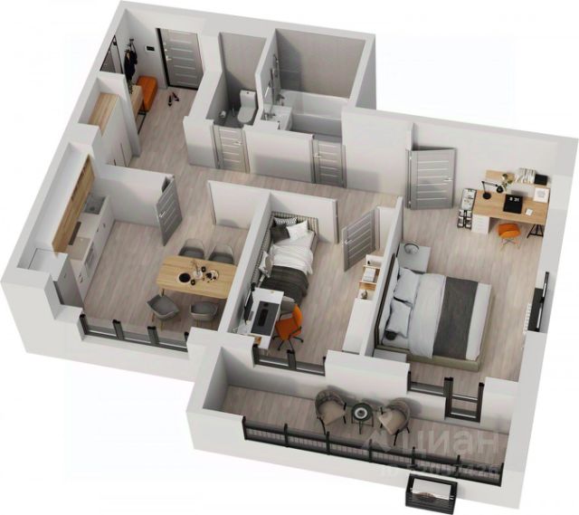 Квартира выполнена в тонах сегодняшних тенденций.Фурнтура и материалы подбирались в сочетаемой гамме.Уютная,теплая.Вам остается только подобрать мебель по вашему вкусу,избежав этапа ремонта и многочисленных взаимодействий с отделочниками