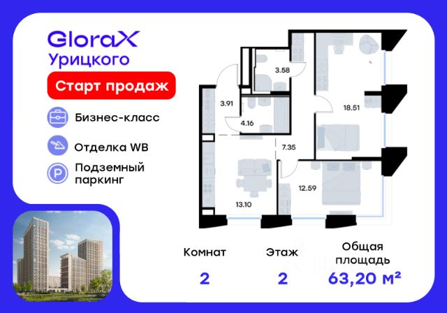 Продается 2-комн. квартира на 2-м этаже в квартале бизнес-класса GloraX Урицкого. Общая площадь лота составляет 44,28 кв. м, из которых 21,41 кв. м отведено под жилую и 11,28 кв. м под кухонную зону. Номер квартиры - 392 GloraX Урицкого это идеальное сочетание динамики мегаполиса и камерности района, где каждое утро начинается легко, а каждый вечер наполнен ощущением дома Преимущества квартиры: двухкомнатная квартира; остекленная лоджия; вид на город. Преимущества, которые изменят вашу жизнь: • Собственная инфраструктура: Всё для комфорта и досуга, не выходя за территорию проекта • Безопасность 24/7: Закрытая территория, видеонаблюдение, система "Умный дом" • Безбарьерная среда: Забота о каждом жителе, независимо от возраста • Футуристичные лобби: Эстетика и комфорт с первых шагов в вашем доме. • Колясочные в каждой секции: Больше пространства в ваших квартирах • Квартиры в отделке White Box: Готовый холст для реализации дизайнерских идей. • Благоустройство в стиле лесопарка: эко-пространство, где природа становится частью повседневной жизни. GloraX Урицкого это проект бизнес-класса для тех, кто живёт в ритме большого города, но ждёт безмятежности у себя дома. Здесь всё важное происходит рядом с вами: работа, встречи, спортивные и культурные активности, прогулки, образование и обучение. Здесь вы ощутите, что вы наконец-то дома — в доме, которого давно ждали. Стоимость действительна при 100% оплате или стандартной ипотеке.