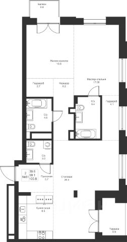 В доме представлен широкий выбор планировок: квартиры с просторными террасами, пентхаусы, мастер-спальнями с личными ванными и гардеробными, угловыми окнами и продуманной геометрией света. Также в проекте — форматы 3-, 4- и 5-комнатных квартир.