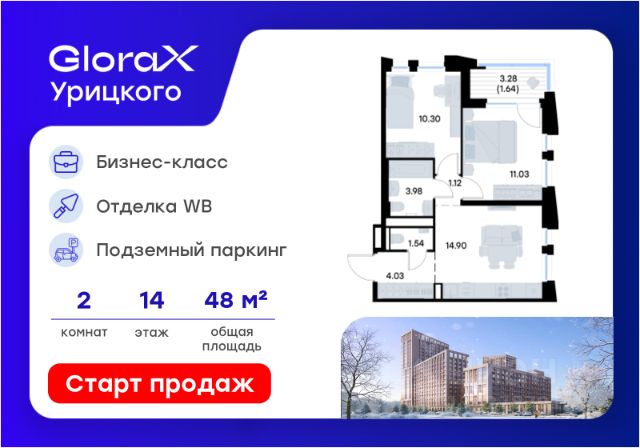 Продаётся 2-комнатная квартира в строящемся доме (Корпус 1), срок сдачи: II-кв. 2028, общей площадью 59.36 кв.м., на 14 этаже. GloraX Урицкого - это новый квартал, рожденный в сердце Московского района Казани, там, где встречаются энергия большого города и тишина старых парков. Проект создает пространство для тех, кто хочет чувствовать себя в центре событий, но при этом возвращаться домой в атмосферу уюта и спокойствия. Главная идея комплекса - гармония города и природы. Здесь архитектура строгих линий сочетается с зеленью двора, напоминающего природный лесопарк, где воплощается многообразие сценариев жизни: от утренней зарядки в зоне воркаута до вечерних прогулок по уютным аллеям и встреч в комьюнити-центре. GloraX Урицкого становится главной доминантой района, новым символом современности, задающим новый уровень качества городской среды. Переменная этажность открывает панорамы города, а динамичные фасады придают ансамблю элегантность и стройность. Этот проект словно открывает новую главу в истории Московского района.