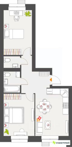 Представляю Вашему вниманию просторную двухкомнатную КВАРТИРУ С ДИЗАЙНЕРСКИМ РЕМОНТОМ в современном жилом комплексе. ОБЩАЯ ИНФОРМАЦИЯ: - общая площадь 60,9 кв.м.; - комнаты правильной формы: 1 спальня 14,41, 2 спальня 15,07, кухня-гостиная 17,76, прихожая 7,77, ванная 3,74, сан узел 2,04 - комфортный 6 этаж из 10; ПЛАНИРОВКА И ОТДЕЛКА: Квартира имеет четкое зонирование: - просторная кухня-гостиная с зоной отдыха, ТВ и рабочим пространством; - спальня с панорамным остеклением; - детская с видом во двор; - дизайнерский ремонт выполнен из дорогостоящих материалов; - кухонный гарнитур со встроенной техникой (холодильник, посудомоечная машина, индукционная плита, СВЧ печь, духовой шкаф); - установлен теплый пол в коридоре и санузле. Квартира оборудована мебелью и техникой, установлен кондиционер, проведен беспроводной интернет. Подключена питьевая вода, нет необходимости заказывать доставку. О ДОМЕ: - дом кирпичный 2025 года; - закрытая территория, концепция "двор без машин"; - круглосуточная охрана, видеонаблюдение; - автоматическая передача показаний счетчиков; - ландшафтное озеленение двора и прилегающей территории; - бесплатные парковочные места по периметру дома. ИНФРАСТРУКТУРА: - ОСТАНОВКА общественного транспорта возле дома (два автобуса курсируют каждые 30 минут); - действующий детский сад; - строительство школы запланировано на 2026 год; - магазины, пункты выдач. Квартира ждет своего нового владельца. Звоните! Показ в удобное для Вас время. Объект прошел полную юридическую проверку и является абсолютно безопасным к приобретению. Помощь в одобрении ипотеки. Код пользователя: 165005 Номер в базе: 10027724