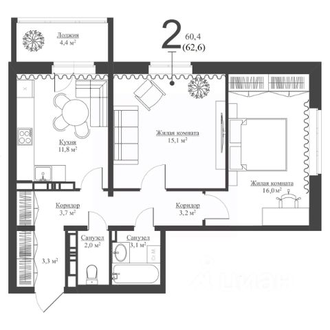 • ✓ В базе Циан 53 2-комнатных квартир с дизайнерским ремонтом в Зеленодольске