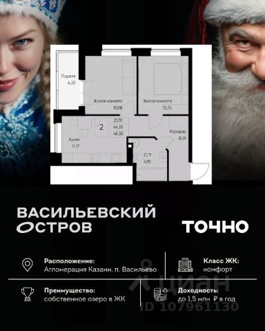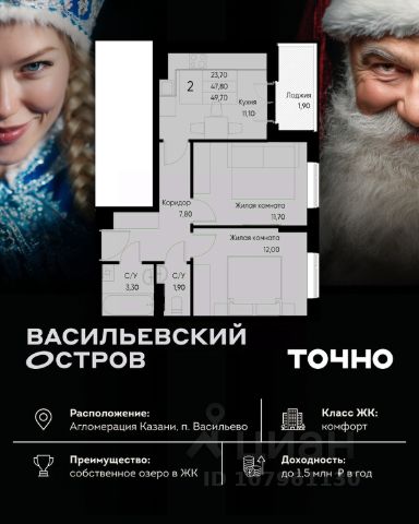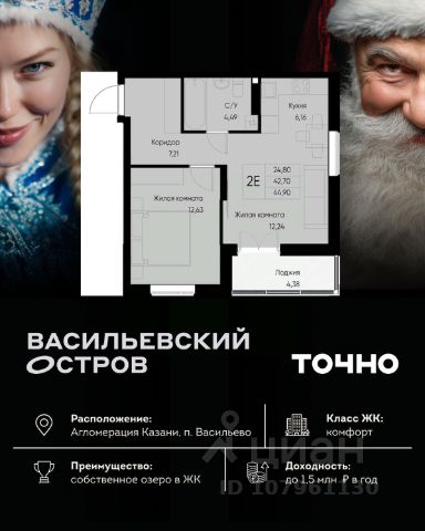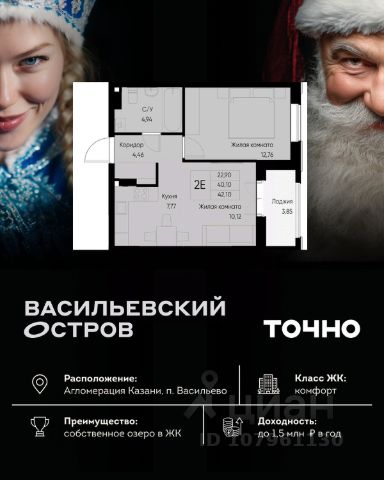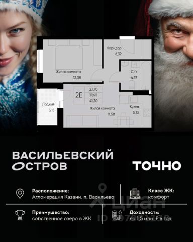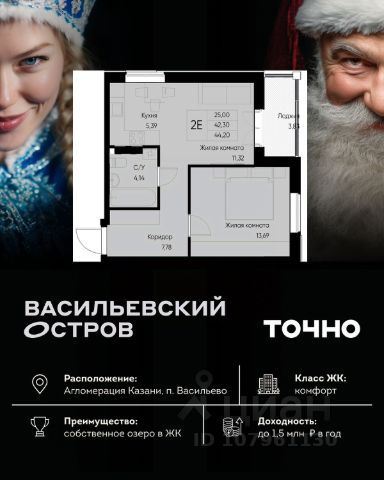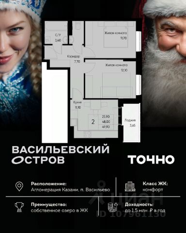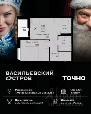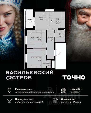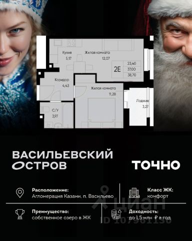 ЖК "Васильевский остров" — масштабный проект ТОЧНО в Казанской агломерации. Просторная территория 88 Га спроектирована для комфортной жизни: озеро с набережной и пляжем, каток, зелёные маршруты. В проекте комплекса — школа на 1 224 места, 2 детских сада на 680 мест, детская и взрослая поликлиники, фитнес-центр с бассейном, термальный комплекс, фермерский рынок, магазины, кафе и рестораны.