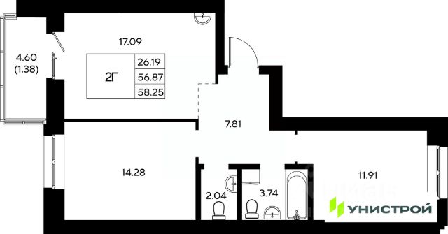 Российская Федерация, Республика Татарстан, Пестречинский муниципальный район, Шигалеевское сельское поселение, жилой комплекс "Усадьба Царево-2", 3 кв.119