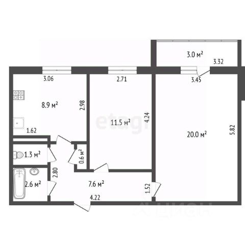 Фактическая площадь квартиры 21 квадратных метров, по выписке ЕГРН 12 кв.м.