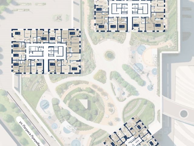 + пешеходный бульвар, с фонтаном, вело-дорожками, зонами отдыха, детскими площадками, кафе.
