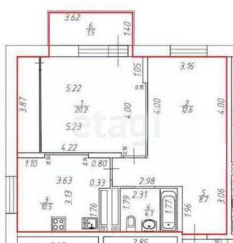 Общая площадь квартиры составляет 58.7 кв. м + лоджия 6 м