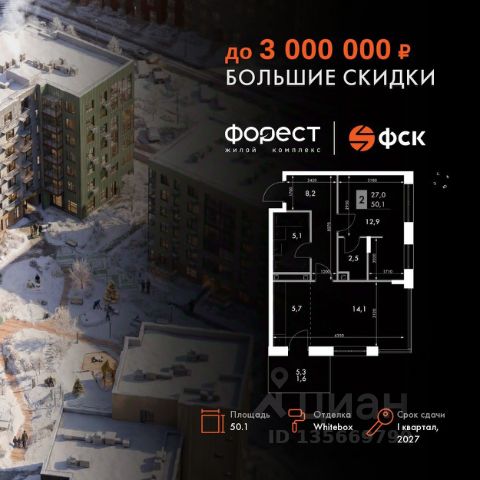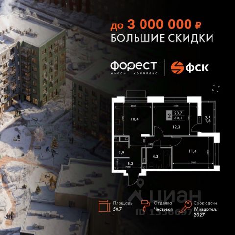 Прямая продажа от застройщика! Жилой Комплекс комфорт-класса. Продаётся 2-к квартира номер 10 общей площадью 45.8 кв.м. на 2-м этаже 7 этажного здания. Отделка Whitebox. Цена с учётом скидки. Особенности квартиры: Квартира с предчистовой отделкой (White box). Вам не придется заниматься черновыми и трудоёмкими работы, а чистовую отделку и дизайн - сделайте на свой вкус. Информация о комплексе: "Форест" - жилой комплекс комфорт-класса, созданный для тех, кто ищет гармонию с природой, не отказываясь от городского ритма. Расположенный в окружении леса и реки, он воплощает мечту о загородной жизни со всеми удобствами города. Здесь можно проживать самые тёплые моменты с близкими, дышать свежим хвойным воздухом, встречать утро на собственной террасе или проводить вечера с друзьями под открытым небом. Благоустроенная территория, прогулочные дорожки и зоны отдыха создают атмосферу уюта и гармонии. Поблизости - лес и Волга, куда можно выбраться на прогулку в любое время, не дожидаясь выходных. Благодаря вечнозелёным растениям и продуманному озеленению, дворы остаются зелёными круглый год. Транспортная доступность: - 4 мин. пушком до автобусной остановки - 5 мин. на машине до школы Внутренняя инфраструктура: Продуманное пространство для жизни, отдыха и развития. На территории комплекса работает собственный детский сад - современное и безопасное пространство, где дети всегда рядом с родителями. Во дворе установлены игровые комплексы для активных прогулок и развития малышей на свежем воздухе. Жителям доступны кафе и магазины, собственный SPA-центр, площадки для прогулок с питомцами, зоны для пикников и барбекю. Для любителей активного образа жизни предусмотрены велодорожки, воркаут-зоны и тропы для хайкинга, а в шаговой доступности находятся планетарий и глэмпинг. Просторный двор без машин и закрытая территория с системой контроля доступа обеспечивают высокий уровень безопасности и приватности. Здесь можно по-настоящему расслабиться и чувствовать себя дома - в окружении природы, комфорта и заботы о каждом дне.