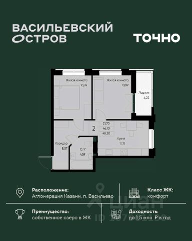 • ✓ В базе объявлений Циан 196 2-комнатных квартир в острове ЖК Васильевский в поселке городского типа Васильево.