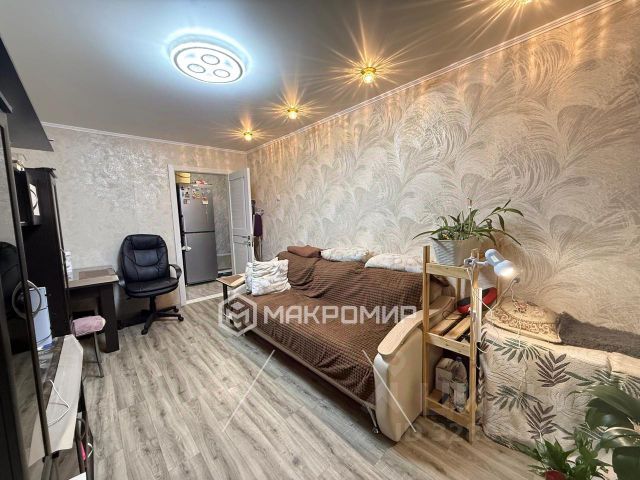 Красивая спальная с достаточным количеством места для хранения, где можно расслабиться после долгого дня. Балкон 4 метра, выход из спальной, окна во двор, на детскую площадку.