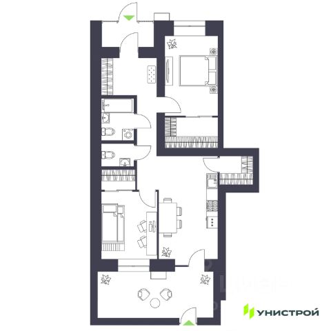 Царёво City Природа города "Царёво City" проект компании "Унистрой" в Татарстане, сочетающий в себе все преимущества жизни в комфортабельных городских квартирах, при этом в загородном комплексе, рядом с природой. Жилой комплекс расположен в живописном районе республики в 10 минутах езды от Казани. На территории комплекса "Царёво City" собственная школа и 2 детских сада. В шаговой доступности, в соседнем "Царёво Village" ритейл-парк Udacha, лицей с агробиологическим уклоном, 3 детских сада, лесопарковая зона с барбекю и озером. Бульвар, приватные дворы, комфортная переменная этажность, стильные холлы. В проекте представлено большое разнообразие планировочных решений: студии, европланировки и полноценные 1-, 2-, 3-комнатные. Для ценителей частных пространств мы подготовили миксы загородных домов и городских форматов: квартиры с личным входом с улицы, коллекционные варианты с террасами, а также мастер-спальни с ванными, гардеробными и эксклюзивные варианты на последних этажах с видом на зелёные окрестности района. "Царёво City" гармония архитектуры и природы, частной жизни и городского комфорта. Российская Федерация, Республика Татарстан, Пестречинский муниципальный район, Шигалеевское сельское поселение, жилой комплекс "Усадьба Царево-2", 2 кв.71