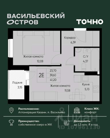 - Просторная кухня-гостиная площадью 34,3 кв.м., идеально подходит для семейных ужинов и приёма гостей.