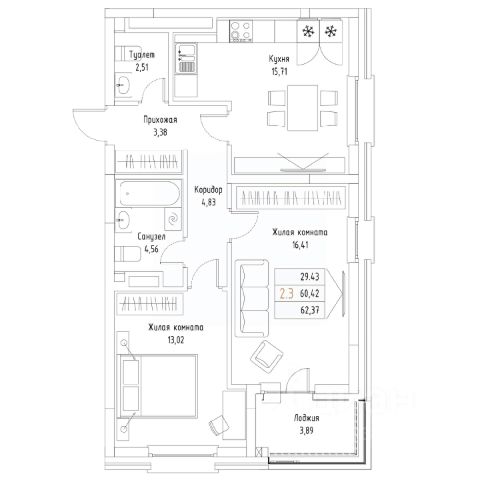 Продаётся, полноценная 2х комнатная квартира, в новом ЖК "АЛТЫН ЯР" В пешей доступности от будущей набережной озера Средний Кабан !!! ! Практичная планировка квартиры, имеется гостевой ( второй санузел) Общая площадь - 55,14 кв.м. ( с учетом лоджии) общая проектная - 53,41 кв.м. ( без учета лоджии ) жилая площадь - 24,24 кв.м ( 14,12 и 10,15) площадь по комнатам площадь кухни - 11,88 кв.м Квартира расположена на четвертом этаже . Срок ввода в эксплуатацию дома и срок передачи ключей 01. 09. 2025 . Это значит, что в этом году вы уже сможете получить ключи и начать ремонт. Конструкция дома - монолитный каркас, наполнение красный керамический кирпич. , межквартирные и межкомнатные стены - красный керамический кирпич, качественная пред чистовая отделка. Входная дверь - металлическая. Имеется лоджия . Жилой комплекс расположен в Приволжском районе , около танкового кольца , данная транспортная развязка поможет вам уехать в любом направлении, а до центра добраться за 15 мин, благодаря движению без светофоров по пр. Универсиады!!! Вдоль всех набережных озера Кабан планируется создать систему медленного транспортного движения. В районе озера Средний Кабан зоны промышленных предприятий трансформируют под нужды казанцев. Здесь планируется создать площадки для проведения различных мероприятий, занятий экстремальными видами спорта, а также разбить новый городской пляж. Продается по переуступке , срок сдачи 01.09.2025. 1 взрослый собственник , полная цена в договоре. Материнский капитал не использовали. Ипотека 13,99 % на вторичное жилье! Ипотека на новостройки для всех от 11% . Ипотека на новостройки по СИ от 2.99% на весь срок! Звонки принимаем ежедневно до 21.00! Успейте забронировать квартиру по хорошей цене! Номер объекта: #1/803299/133