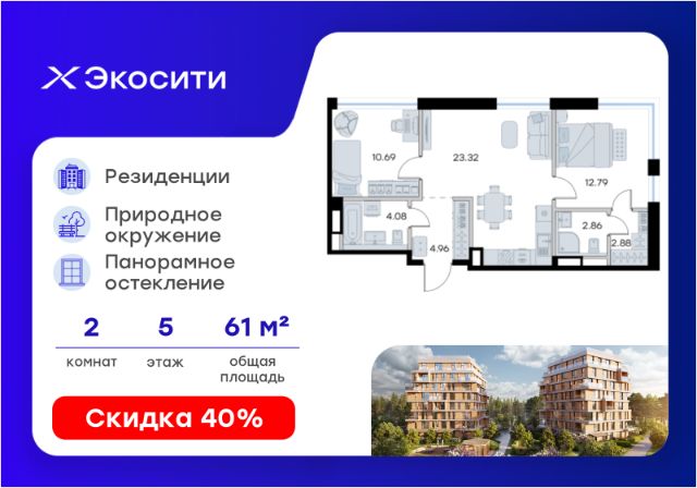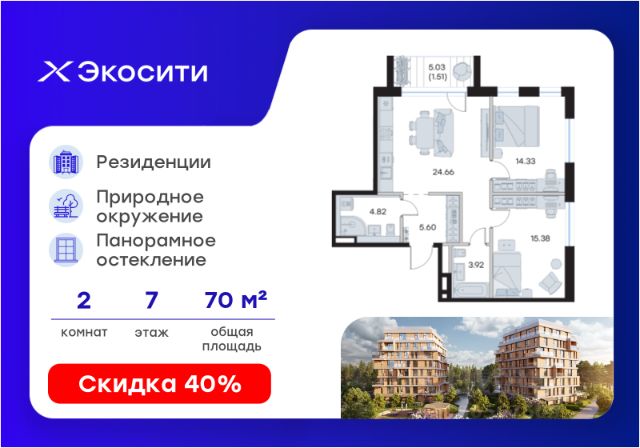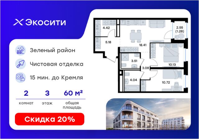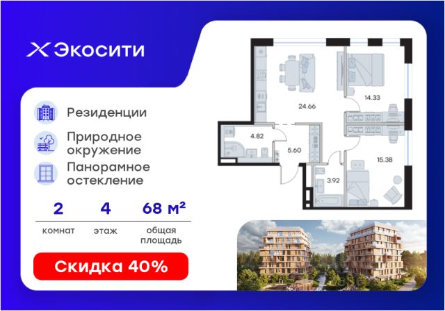 Продается 2-комн. квартира на 4-м этаже в строящемся проекте Экосити. Общая площадь лота составляет 64,83 кв. м, из которых 23,48 кв. м отведено под жилую и 23,32 кв. м под кухонную зону. Номер квартиры - 63 Преимущества резиденции в квартале "Резиденции": - перегородки межкомнатные перегородки в 1 кирпич, в С/У в 2 кирпича с заведением гидроизоляции на 20 см - потолки - без отделки - полы в помещениях: жилые комнаты, гардеробная, коридор, прихожая, кухня - шумоизоляция пола, стяжка -полы во влажных помещениях - гидроизоляция, стяжка -водоснабжение -ввод ХВС, ГВС, канализации в ближайший СУ/в квартиру - электрический щит - временный, при входе в квартиру - отопление - горизонтальная разводка в полу с установкой - входная дверь - металлическая входная дверь с декоративной накладкой - На территории Урбан-квартала предусмотрено строительство детского сада на 360 мест, школы на 1501 место, детский развивающий центр на 2000 мест. - Рядом с с кварталом Резиденции запланировано строительство детского сада на 360 мест, школы с детским развивающим центром на 1501 место - На первых этажах домов Урбан-квартала запроектированы коммерческие помещения - предусмотрены места для супермаркетов, бытовых услуг, кафе. - Собственный комьюнити-центр для жителей Урбан-квартала - Клуб Резидентов для жителей квартала Резиденции - бульвар "Река между камней" с плейхабом для детей, амфитеатром, спортивными зонами, аллеей достижений. Всем посетителям будет доступен иммерсивный маршрут и AR-игры. - Тайная тропа вдоль которой расположатся зоны тихого отдыха, йоги и медитаций - 2 смотровые площадки - Снейк-ран - Круговой спортивный маршрут - Специальные зоны для выгула собак - В Урбан-квартале предусмотрено строительство 2 многоэтажных паркингов на 300 и 360 машиномест. Всем жителям проекта доступен и привычный плоскостной паркинг вокруг территории проекта с возможностью в приложении дома получить информацию о наличии парковочных мест. - В квартале Резиденции предусмотрен подземный паркинг на 260 машиномест Экосити — это совершенство города в первозданной природе. Наполненный возможностями квартал, в котором вы не выбираете между городом или природой, семьей или работой, отдыхом или спортом, — вы берете всё сразу. Каждая семья, каким бы составом она ни жила, найдет для себя идеальное пространство. Планировочные решения разнообразны, также как и возможности отделки от черновой до полностью с ремонтом. Здесь запроектированы квартиры с просторной кухней-гостиной, чтобы семья могла комфортно проводить время вместе. Резиденции сдаются в черновой отделке, вы могли реализовать ваши самые смелые дизайнерские решения. Каждая резиденция это база, на которой можно выстроить свой личный стиль. Цена указана при 100% оплате или стандартной ипотеке. Узнайте подробности в Отделе продаж.