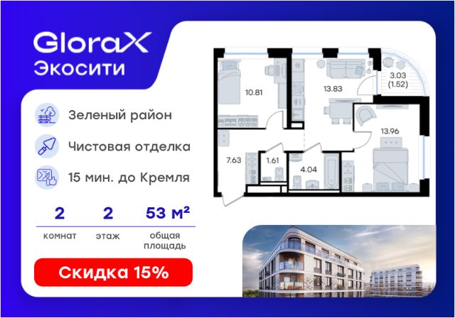 Продается 2-комн. квартира на 2-м этаже в строящемся проекте GloraX Экосити. Общая площадь лота составляет 46,74 кв. м, из которых 22,42 кв. м отведено под жилую и 11,62 кв. м под кухонную зону. Номер квартиры - 173 Преимущества квартиры: • Квартира с полностью чистовой отделкой. В комнатах и коридоре: - натяжной потолок, - стены оклеены обоями под покраску, - полы: ламинат, плинтусы и напольная плитки - установлены межкомнатные двери и подоконники. В санузлах: - на стенах - керамогранитная плитка и/или окраска водостойкой краской - на полу - керамогранитная плитка; - натяжной потолок - сантехника: ванна и экран под ванну/душевой поддон, унитаз, раковины и смесители, монтаж водопровода и канализации - Предусмотрен расширенный пакет системы Умный Дом: бесключевой доступ в подъезд, видеодомофон с функцией Face ID, видеонаблюдение, автоматизированный сбор и передача показаний счётчиков; - Внутренние дворы каждого урбан-блока закрытые, благоустройство по индивидуальному проекту. - На территории квартала предусмотрено строительство детского сада на 360 мест, школы на 1501 место, ДОУ на 2000 мест. - На первых этажах домов запроектированы коммерческие помещения - предусмотрены места для супермаркетов, бытовых услуг, кафе. - Собственный комьюнити-центр для жителей жилого комплекса - бульвар "Река между камней" с плейхабом для детей, амфитеатром, спортивными зонами, аллеей достижений. Всем посетителям будет доступен иммерсивный маршрут и AR-игры. - лесная прогулочная аллея вдоль которой расположатся зоны тихого отдыха, йоги и медитаций - 2 смотровые площадки - специальная зона для выгула собак - В жилом комплексе предусмотрено строительство 2 многоэтажных паркингов на 300 и 360 машиномест. Всем жителям проекта доступен и привычный плоскостной паркинг вокруг территории проекта с возможностью в приложении дома получить информацию о наличии парковочных мест. GloraX Экосити — это совершенство города в первозданной природе. Наполненный возможностями район, в котором вы не выбираете между городом или природой, семьей или работой, отдыхом или спортом, — вы берете всё сразу. Каждая семья, каким бы составом она ни жила, найдет для себя идеальное пространство. Планировочные решения запроектированы с просторной кухней-гостиной, чтобы семья могла комфортно проводить время вместе. В целях безопасности в детских комнатах отсутствуют балконы и лоджии. Квартиры сдаются с современной качественной отделкой, что позволяет после сдачи дома сразу начать жить, избежав долгих самостоятельных ремонтов. Цветовые решения и стиль отделки можно выбрать при покупке квартиры. Цена указана при 100% оплате или стандартной ипотеке. Узнайте подробности в Отделе продаж.