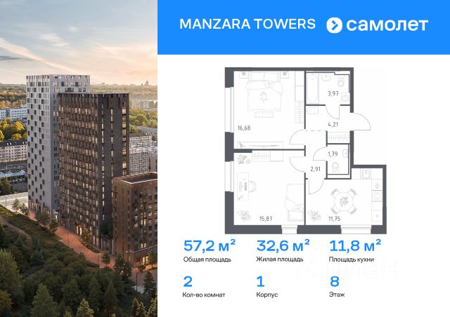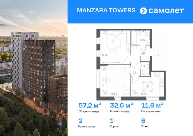 Строим кварталы для жизни с заботой о будущем. Предлагается 2-комнатная квартира комфорт-класса 57,01 кв.м в корпусе 3 на 5 этаже, в MANZARA TOWERS Квартира с черновой отделкой. Доступность опции "отделка" и возможность комплектации мебелью и декором уточняйте у застройщика. Приобрести квартиру возможно по специальным акциям от застройщика, с текущими условиями акций можно ознакомиться в блоке "Акций". Цена динамическая и может отличаться, уточняйте актуальность у застройщика. Manzara Towers — это дома высотой от 7 до 24 этажей. В увеличенных окнах с зеркальной поверхностью отражаются облака и солнечные блики. Тихий двор с игровыми площадками и воркаут-пространством идеален для прогулок с кофе. На первом этаже есть выход на стилобат, где появятся зеленые оазисы и открытые террасы. Дома соединяет между собой частично прозрачный пешеходный мост. Предусмотрены подземный и 6-этажный многоуровневый паркинги. До ж/д вокзалов можно доехать за 20 минут. Или в обеденный перерыв встретиться с друзьями в центре города — дорога на машине займет около 15 минут. На первых этажах корпусов откроется детская поликлиника, ФОК с бассейном, магазины, кафе и салоны красоты. Для маленьких жителей уже работают 3 детских сада и лицей, до которых можно дойти за 615 минут. Во всех наших корпусах входы в светлые лобби находятся на уровне земли. На первом этаже есть специальные места для хранения колясок и велосипедов.