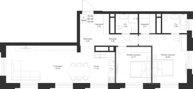 Продается 2-комнатная квартира 48 площадью 88,69 кв.м на 2 этаже в жилой резиденции премиум-класса ЖК "Мифы", созданная для ценителей роскошной и приватной жизни в городе. Резиденция из 4-х корпусов, объединенная галереей с респектабельным лобби и общественным пространством. Локация: Комплекс расположен в самом сердце Советского района Казани, что обеспечивает удобный доступ ко всем ключевым объектам городской инфраструктуры. Характеристики и преимущества ЖК "Мифы": Эксклюзивная концепция: ЖК "Мифы" предлагает уникальную комбинацию роскоши и комфорта, являясь идеальным местом для проживания. Награды: комплекс признан лучшим жилым комплексом в конкурсе на лучшее архитектурное и градостроительное решение в Казани. Клубный проект: камерные пространства. Удобства: квартиры с террасами, которые подарят великолепные виды и свежий воздух. Свободная планировка, что позволит создать индивидуальное жилое пространство. Сервис: консьерж-сервис, первоклассное лобби, создающее атмосферу гостеприимства и высокого статуса. Инфраструктура: подземный паркинг, обеспечивающий безопасность и комфорт владельцев автомобилей. Контакты: По вопросам приобретения и для записи на просмотр квартир, пожалуйста, свяжитесь с нашим отделом продаж