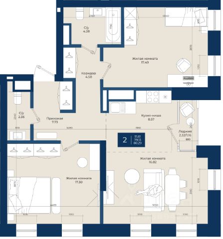Жилой комплекс "NOVA" Квартира 66 общей площадью 80,29 м2 на 8 этаже. "NOVA" —жилой комплекс бизнес-клаcсa oт зaстройщикa НоваСтрой. Все преимущества высокого бизнес-класса собраны в одном месте. На территории ЖК расположены торговые галереи, прогулочный бульвар, спортивная и детская площадки, двор-парк и фитнес-клуб. При этом зоны, доступные только для жильцов, отделены от общественных пространств, что сохраняет приватность, спокойствие и безопасность жителей комплекса. В проекте представлены квартиры с террасами, с которых открываются панорамные виды на центр города и другие эксклюзивные форматы: квартиры с патио, квартиры с увеличенными потолками до 4,8 м., пентхаусы с отдельным доступом в лифт на верхних этажах жилых башен. Во всех квартирах выполнена качественная предчистовая отделка. Звоните — наши менеджеры предоставят вам полную информацию о текущих акциях, помогут одобрить ипотеку и предложат наиболее подходящий вариант в жилом комплексе "NOVA"