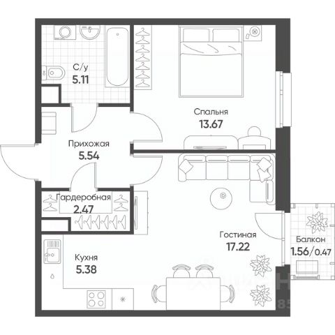 Арт. 114484807 Переуступка от физ лица! 2 кк квартира в ЖК "Счастье в Казани", застройщик Эталон. Ново - Савиновский район, бизнес класс, сдача 4 квартал 2025 года, корпус 4, вид во двор. о квартире: гостиная 14,5 кв.м. кухня 14 кв.м. спальня 10 кв.м. 2 санузла 4 кв.м. и 2 кв.м. гардеробная 2,5 кв.м. балкон 3,5 кв.м.
