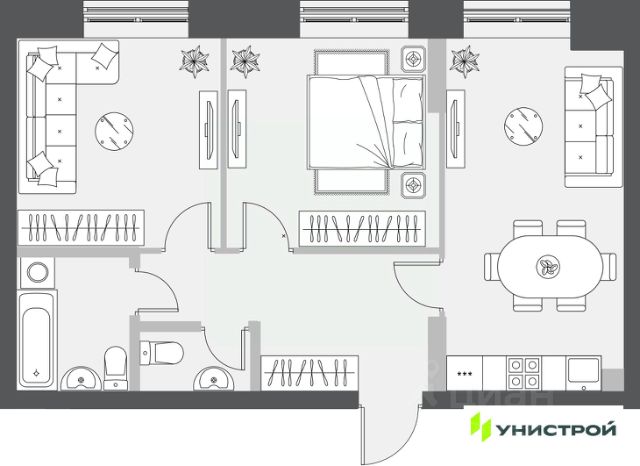 Уникум на Проспекте Победы "Уникум на Проспекте Победы" — проект от компании "Унистрой" в Казани. Жилой дом состоит из двух секций переменной высотности 7-25 этажей и гармонично вписывается в городское пространство. Жилой проект задает тренд на инклюзивную среду. Ту, в которой есть возможности для активной жизни и отдыха в пределах "Уникума". Проект отвечает ключевым запросам современного жителя большого города. Комфорт. Эстетика. И всё необходимое для успешной жизни рядом. "Уникум" — это лёгкая архитектура, стильное благоустройство и комфортное пространство для вашей жизни и отдыха. Развитый район "Уникум на Проспекте Победы" расположен в Советском районе Казани. Аэропорт находится в 25 минутах езды, ТЦ "Мега" и "Южный" в 10 минутах ходьбы, а остановка "Закиева" в двух минутах. В шаговой доступности фитнес-клубы, салоны красоты, медицинские центры и поликлиника. Для семей с детьми детский сад в доме, школы 156, 144, 167, 187 и 171 поблизости. Функциональность и эстетика "Уникум на Проспекте Победы" гармонично вписывается в городской ландшафт. Фасад в бежевых тонах с декоративным кирпичом соответствует современным требованиям к эстетике. На первых этажах коммерческие помещения для магазинов, кофеен и офисов, выполненные в едином стиле. Просторные холлы с высотой потолков 4,2 метра, подсветкой, современным дизайном и комфортной мебелью создают уютную атмосферу. Предусмотрены бесшумные скоростные лифты и колясочные с зарядками для электросамокатов. Входные группы из стекла, домофоны в теплом тамбуре, система грязезащиты и навигация обеспечивают удобство и безопасность. Френдли-среда и урбанистические тренды двора Двор "Уникума на Проспекте Победы" это френдли-среда, урбанистические тренды и баланс между отдыхом и работой. Жилой комплекс предлагает многообразие общественных пространств, а также фитнес-площадку, воркаут-зону, детские площадки для разных возрастов. Велопарковки у каждого подъезда, подземный паркинг и открытые машиноместа. Уникальные планировочные решения Жилой дом предлагает большое разнообразие планировок: студии, 1-комнатные, 2-комнатные (в том числе с европланировкой), просторные 3-комнатные. Квартиры с мастер-спальнями, гардеробными, видовые, с панорамными и угловыми окнами. Увеличенные оконные проёмы для создания светлого пространства. Лёгкое решение бытовых вопросов В "Уникуме на Проспекте Победы" обеспечивается подача чистой воды в каждую квартиру. Автоматическая передача данных учета воды, электричества и тепла в сервисную компанию через мобильное приложение. Электронные замки на входных дверях с дистанционным управлением. Паркинг "Уникум на Проспекте Победы" включает подземный паркинг со спуском на лифте. В нём 222 места для ваших автомобилей, 16 семейных и еще гостевые места. Паркинг, как и внутренний двор, охраняется и оборудован видеонаблюдением. Республика Татарстан, Казань, Проспект Победы , 001 кв.54