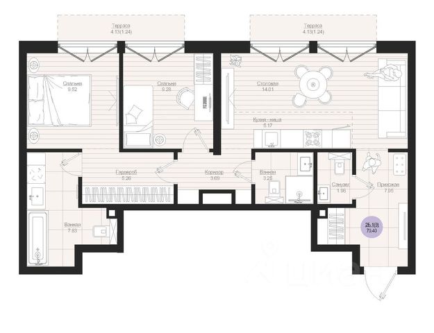 Объект 104707 Видовая Евро 3 ком квартира с видом на Волгу! СРОК СДАЧИ 4 кв. 2026 г.