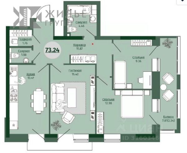 • ✅ Минимальная площадь: 65,9 м²