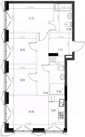 Общая площадь квартиры 67,4 кв.м., высота потолков 2,7 м. В квартире выполнена качественная предчистовая отделка. Изолированные комнаты. Две застекленные лоджии.