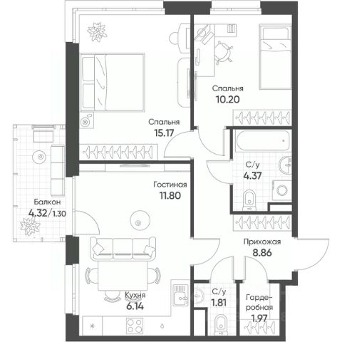 Установлены пластиковые окна с тройным остеклением по всей квартире. Во дворе дома имеется большое количество парковочных мест для машин, детская площадка.