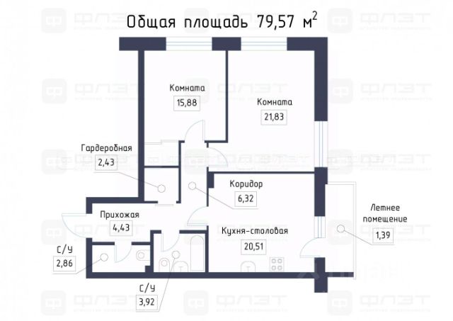 Квартира имеет общую площадь 107 кв.м и расположена на 3-м этаже, панорамные окна высотой три метра обеспечивают прекрасный вид на город.