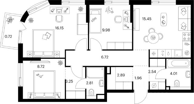 Удачная и продуманная планировка квартиры, отличается удобством и правильным зонированием пространства.