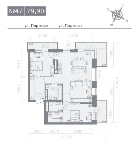 Функциональная и продуманная планировка, две изолированные спальни гостиная, кухня.