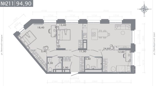 Продаётся 3-комнатная квартира в строящемся доме (Корпус 1), срок сдачи: II-кв. 2028, общей площадью 94.9 кв.м., на 3 этаже. Новый жилой комплекс "Оригана" от застройщика "КамаСтройИнвест" расположен по адресу: Россия, Республика Татарстан, Казань, улица Оренбургский Тракт