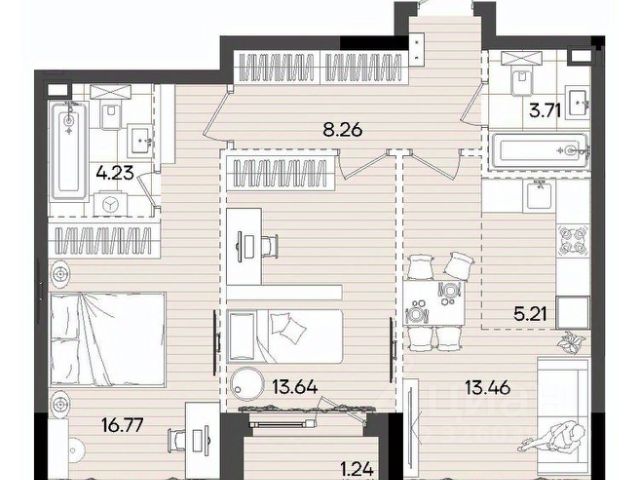 Продаётся 3-комнатная квартира в строящемся доме (Корпус 1), срок сдачи: II-кв. 2028, общей площадью 75.6 кв.м., на 14 этаже.