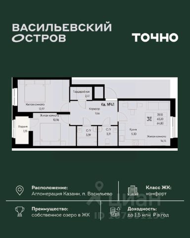 ЖК "Васильевский остров" — масштабный проект ТОЧНО в Казанской агломерации. Просторная территория 88 Га спроектирована для комфортной жизни: озеро с набережной и пляжем, каток, зелёные маршруты. В проекте комплекса — школа на 1 224 места, 2 детских сада на 680 мест, детская и взрослая поликлиники, фитнес-центр с бассейном, термальный комплекс, фермерский рынок, магазины, кафе и рестораны.