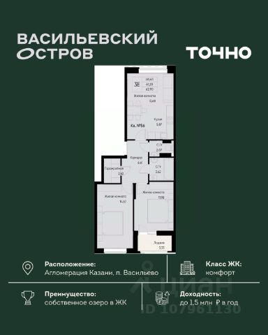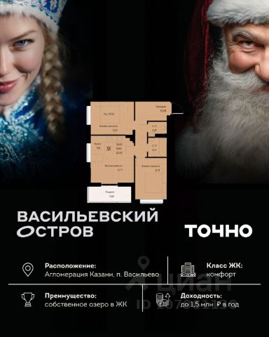 ЖК "Васильевский остров" — масштабный проект ТОЧНО в Казанской агломерации. Просторная территория 88 Га спроектирована для комфортной жизни: озеро с набережной и пляжем, каток, зелёные маршруты. В проекте комплекса — школа на 1 224 места, 2 детских сада на 680 мест, детская и взрослая поликлиники, фитнес-центр с бассейном, термальный комплекс, фермерский рынок, магазины, кафе и рестораны.