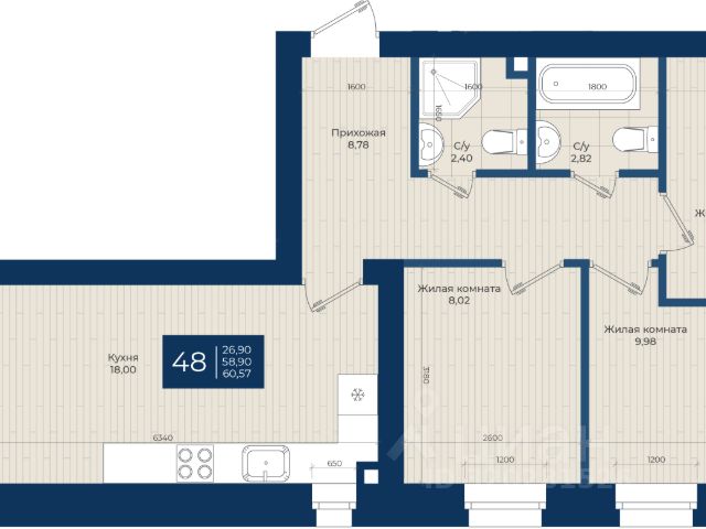 "ЖК на Чехова", Дом 1, Квартира 48 общей площадью 60,57 м2 на 1 этаже. Первый жилой комплекс комфорт класса в Верхнем Услоне oт зaстройщикa НоваСтрой. В шаге от развитой инфраструктуры: школ, детских садов, парков, медицинских учреждений и магазинов. До центра Казани можно быстро и с комфортом добраться по переправе или по федеральной трассе М7. Современные входные группы в ЖК на Чехова спроектированы на одном уровне с тротуаром. Во дворе расположены спортивные и детские зоны. Квартиры с эргономичными евро - планировками, с объединенной кухней-гостиной являются отличным выбором для семей и молодых людей Звоните — наши менеджеры предоставят вам полную информацию о текущих акциях, помогут одобрить ипотеку и предложат наиболее подходящий вариант в жилом комплексе на Чехова.