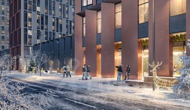 На первых этажах коммерческие помещения для магазинов, кофеен и офисов, выполненные в едином стиле.