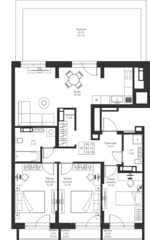 В доме представлен широкий выбор планировок: квартиры с просторными террасами, пентхаусы, мастер-спальнями с личными ванными и гардеробными, угловыми окнами и продуманной геометрией света. Также в проекте — форматы 3-, 4- и 5-комнатных квартир.