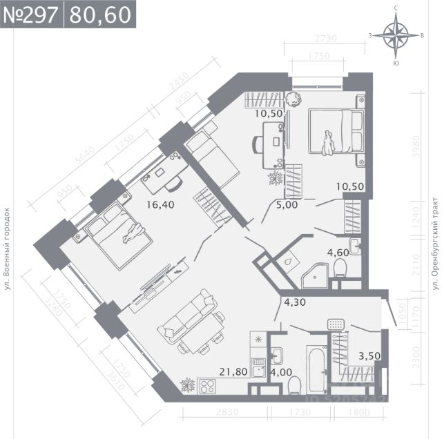 - мастер-спальня 17,51 кв.м. с кондиционером, оснащенной гардеробной, собственным санузлом с ванной и окном, двуспальной кроватью, шторами с электроприводом, а так же выходом на лоджию с видом во двор и мост Миллениум;