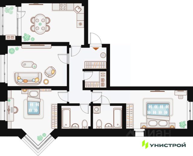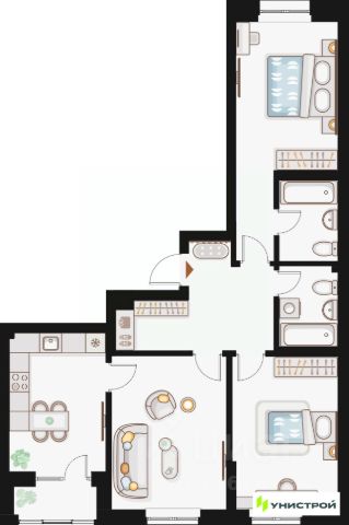 Уникум на Проспекте Победы "Уникум на Проспекте Победы" — проект от компании "Унистрой" в Казани. Жилой дом состоит из двух секций переменной высотности 7-25 этажей и гармонично вписывается в городское пространство. Жилой проект задает тренд на инклюзивную среду. Ту, в которой есть возможности для активной жизни и отдыха в пределах "Уникума". Проект отвечает ключевым запросам современного жителя большого города. Комфорт. Эстетика. И всё необходимое для успешной жизни рядом. "Уникум" — это лёгкая архитектура, стильное благоустройство и комфортное пространство для вашей жизни и отдыха. Развитый район "Уникум на Проспекте Победы" расположен в Советском районе Казани. Аэропорт находится в 25 минутах езды, ТЦ "Мега" и "Южный" в 10 минутах ходьбы, а остановка "Закиева" в двух минутах. В шаговой доступности фитнес-клубы, салоны красоты, медицинские центры и поликлиника. Для семей с детьми детский сад в доме, школы 156, 144, 167, 187 и 171 поблизости. Функциональность и эстетика "Уникум на Проспекте Победы" гармонично вписывается в городской ландшафт. Фасад в бежевых тонах с декоративным кирпичом соответствует современным требованиям к эстетике. На первых этажах коммерческие помещения для магазинов, кофеен и офисов, выполненные в едином стиле. Просторные холлы с высотой потолков 4,2 метра, подсветкой, современным дизайном и комфортной мебелью создают уютную атмосферу. Предусмотрены бесшумные скоростные лифты и колясочные с зарядками для электросамокатов. Входные группы из стекла, домофоны в теплом тамбуре, система грязезащиты и навигация обеспечивают удобство и безопасность. Френдли-среда и урбанистические тренды двора Двор "Уникума на Проспекте Победы" это френдли-среда, урбанистические тренды и баланс между отдыхом и работой. Жилой комплекс предлагает многообразие общественных пространств, а также фитнес-площадку, воркаут-зону, детские площадки для разных возрастов. Велопарковки у каждого подъезда, подземный паркинг и открытые машиноместа. Уникальные планировочные решения Жилой дом предлагает большое разнообразие планировок: студии, 1-комнатные, 2-комнатные (в том числе с европланировкой), просторные 3-комнатные. Квартиры с мастер-спальнями, гардеробными, видовые, с панорамными и угловыми окнами. Увеличенные оконные проёмы для создания светлого пространства. Лёгкое решение бытовых вопросов В "Уникуме на Проспекте Победы" обеспечивается подача чистой воды в каждую квартиру. Автоматическая передача данных учета воды, электричества и тепла в сервисную компанию через мобильное приложение. Электронные замки на входных дверях с дистанционным управлением. Паркинг "Уникум на Проспекте Победы" включает подземный паркинг со спуском на лифте. В нём 222 места для ваших автомобилей, 16 семейных и еще гостевые места. Паркинг, как и внутренний двор, охраняется и оборудован видеонаблюдением. Республика Татарстан, Казань, Проспект Победы , 001 кв.111